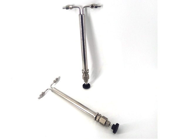 雙針式減壓閥采用超長(zhǎng)調(diào)節(jié)通道和超長(zhǎng)調(diào)節(jié)閥桿的設(shè)計(jì),很大范圍的進(jìn)行流量、壓力的調(diào)整。棒針式減壓閥TS-193A流量調(diào)節(jié)從每公鐘150毫升至4公升、壓力下降至5000Psig的345巴爾格。該減壓閥的減壓的主要原理是當(dāng)高壓樣水通過時(shí),利用細(xì)長(zhǎng)棒針與管內(nèi)孔之間的間隙,達(dá)到減壓的目的。當(dāng)減壓閥的入口處壓力一定時(shí),只須改變棒針的插入深度,即可調(diào)整減壓閥出口壓力,控制樣品流量。