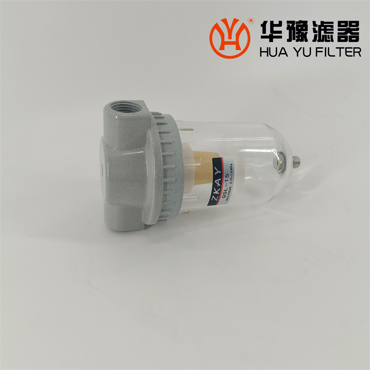 QSL、QSLd (帶保護(hù)罩)系列空氣過濾器一、特點:1、結(jié)構(gòu)簡單,應(yīng)用廣泛。2、采用旋風(fēng)葉片分離水分及雜質(zhì)。不銹鋼微孔截留塵埃。3、存水杯采用透明的聚碳酸脂制成,不僅能滿足耐壓要求,并能清晰地觀察積存的水量。4、金屬保護(hù)罩可保護(hù)存水杯免受外力撞擊導(dǎo)致破碎。